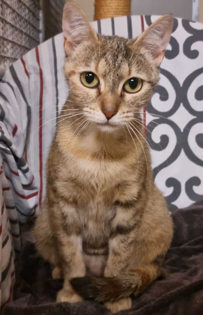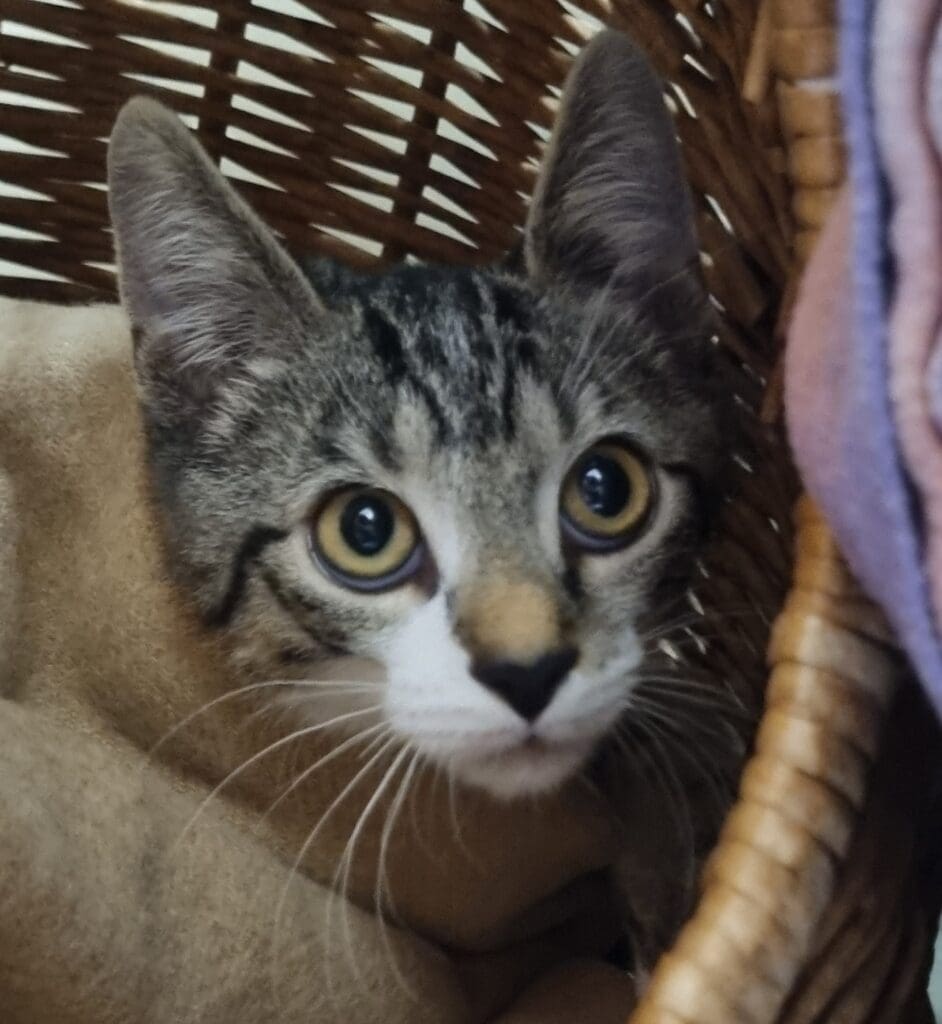 Das ist Pixie Rasse: Europäisch Kurzhaar Geburtsjahr: Mai 2025 weiblich VERMITTELT! Hallo Ihr! Ich bin ein Jungspund. So viel gibt´s von mir noch nicht zu erzählen. Komm einfach vorbei! Wichtig: Jungkatzen werden nur zu zweit oder zu einer altersgleichen Katze vermittelt. Noch zu vermittelnde Tiere ansehen PrevVorherigerPuck NächsterSaphiraNext